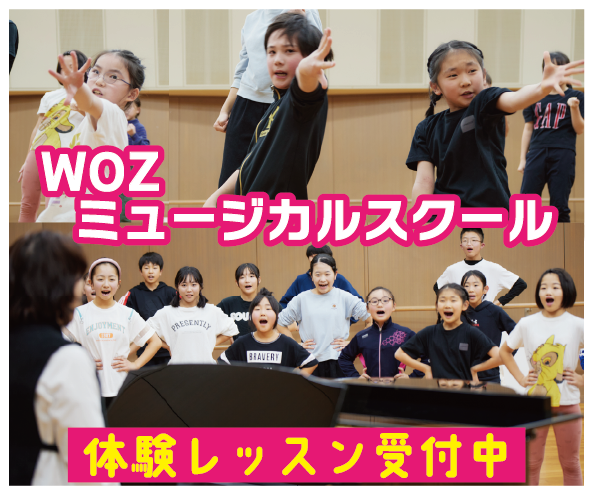 ミュージカルを本格的に学びたいこども達には、専門的に歌・ダンス・演技を学べるミュージカルスクールも展開しています。20年で培った人材を活かし、富山から世界に羽ばたく若き芽を育てていきたいと考えています。20年の節目にNPO法人となった今、WOZで育った若い芸術家が活躍できる場も多く提供できるよう活動の幅を広げ、富山発信の新しいミュージカル劇団の形を築いていきます。